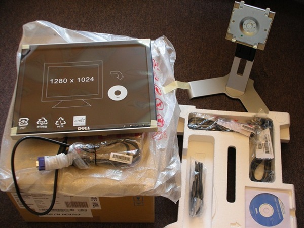 里面所有的东西,包括显示器、支架、电源线、DVI线、VGA线、USB线、快速安装手册和驱动